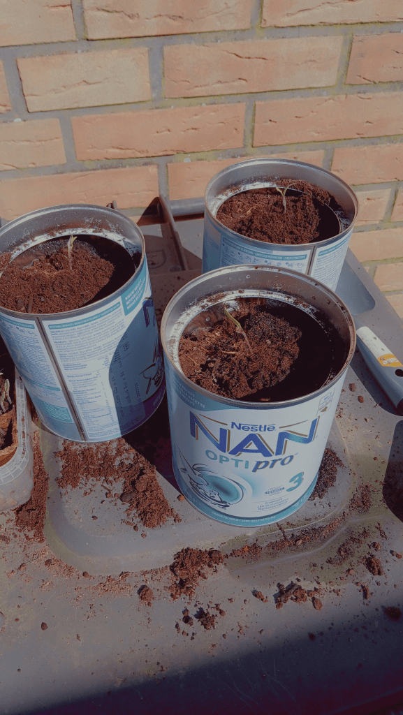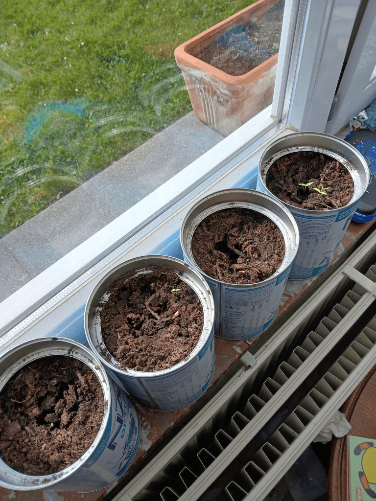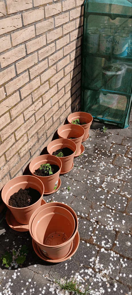 End of April did I start planting out the various saplings into their final containers and destinations.