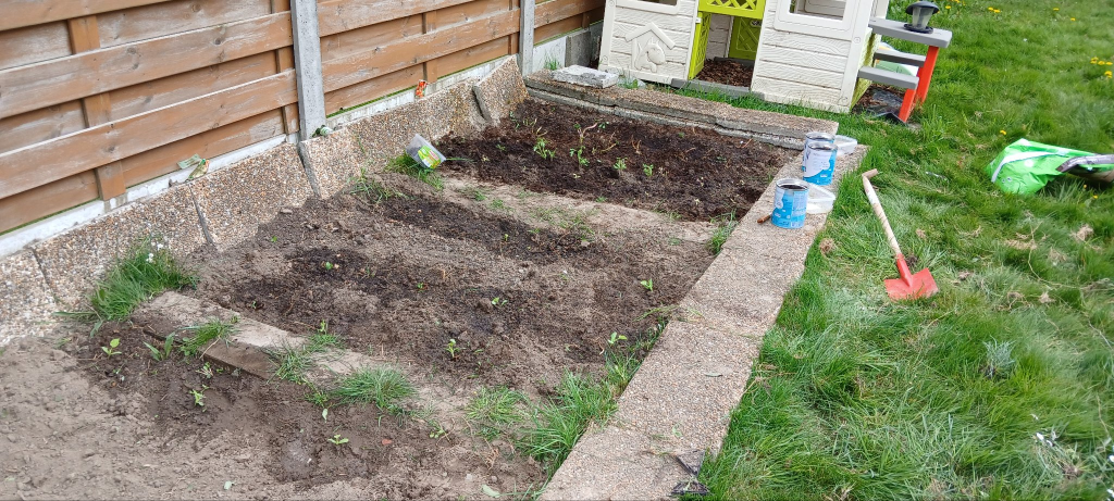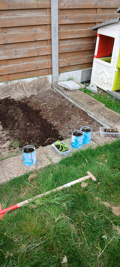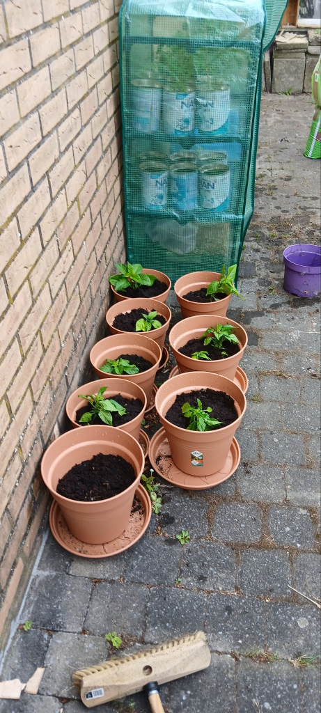Decided to put some (original intent) in plant pots for optimal growth and displace a few of the plants into the full ground.