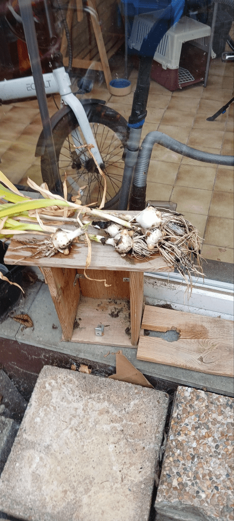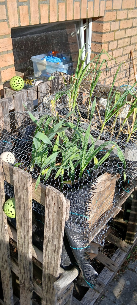 The garlic planted in October 2025 is showing promise as (mostly) the white garlic was giving nice sprouts. The Elephant Garlic was lagging a bit behind but eventually pushed through in early January.